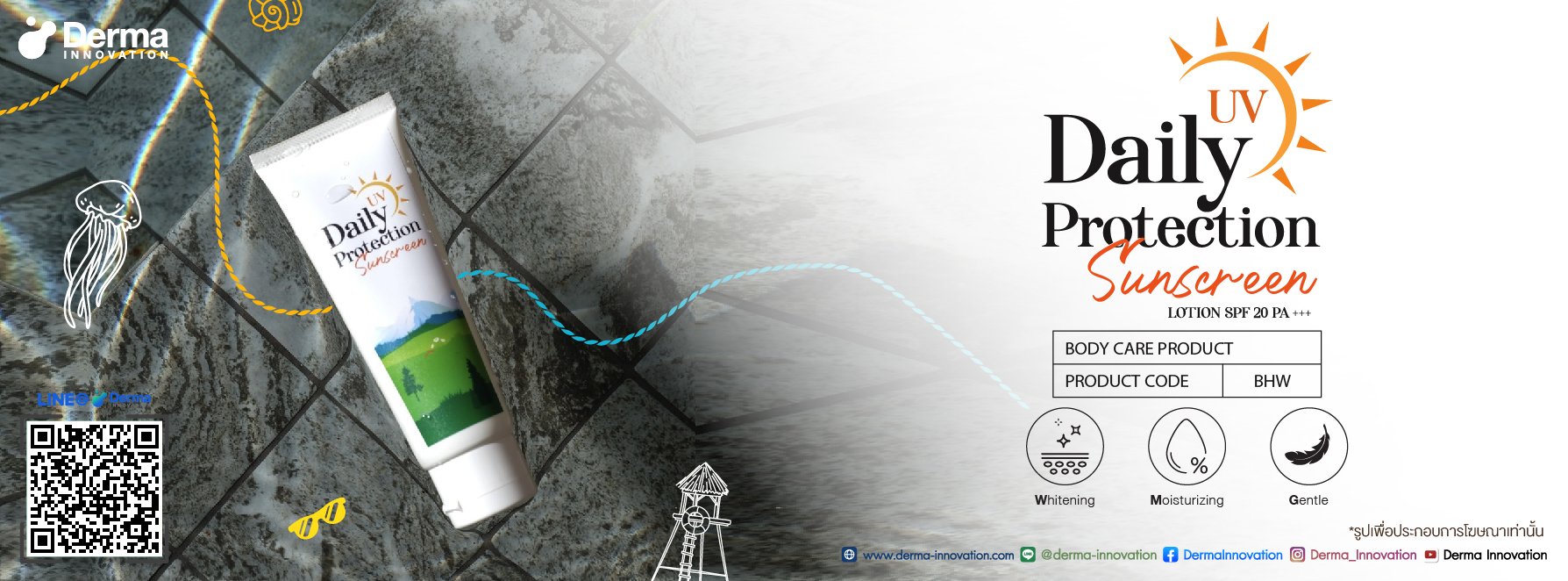 โลชั่นกันแดดสำหรับผิวกายพร้อมสารบำรุงผิว Daily Protection Sunscreen Lotion SPF 20 PA +++ เนื้อสัมผัสบางเบา ซึมเข้าสู่ผิวได้ง่าย ไม่ทิ้งคราบและความเหนียวเหนอะหนะ ด้วยคุณค่าจากพืชเทือกเขาแอลป์ถึง 9 ชนิด ช่วยบำรุงผิวให้เปล่งประกาย แลดูกระจ่างใสขึ้น ผสานคุณค่าจากสารสกัดอีกนานาชนิด ช่วยให้ผิวเรียบเนียน กระชับ พร้อมกักเก็บความชุ่มชื้นสู่ผิว ให้เนียนนุ่มน่าสัมผัส