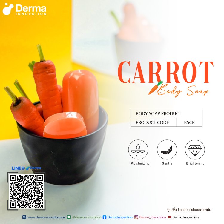 โรงงานผลิตสบู่ผิวขาวทำความสะอาดผิวกาย สารสกัดจากแครอทอุดมไปด้วยวิตามินที่เป็นอาหารผิว ช่วยดูแลผิวอย่างอ่อนโยน และสารสกัดจากฟักข้าวช่วยมอบผิวกระจ่างใสอมชมพู พร้อมเติมความชุ่มชื้นลงสู่ผิว ให้ผิวเนียนนุ่มน่าสัมผัส