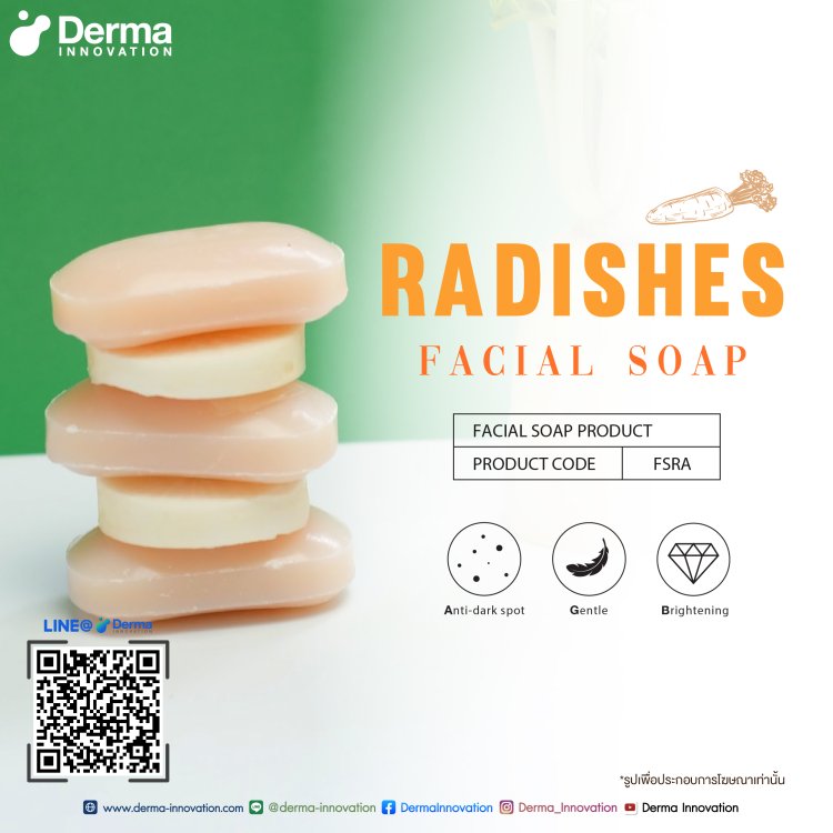 โรงงานผลิตสบู่ล้างหน้า สารสกัดจากหัวไชเท้าที่มีคุณสมบัติช่วยลดเลือนจุดด่างดำให้แลดูจางลง เผยผิวเนียนนุ่มน่าสัมผัส และสารสกัดจากน้ำมันรำข้าวที่อุดมไปด้วยวิตามินอีจากธรรมชาติที่ช่วยให้ผิวเปล่งประกายอย่างเป็นธรรมชาติ