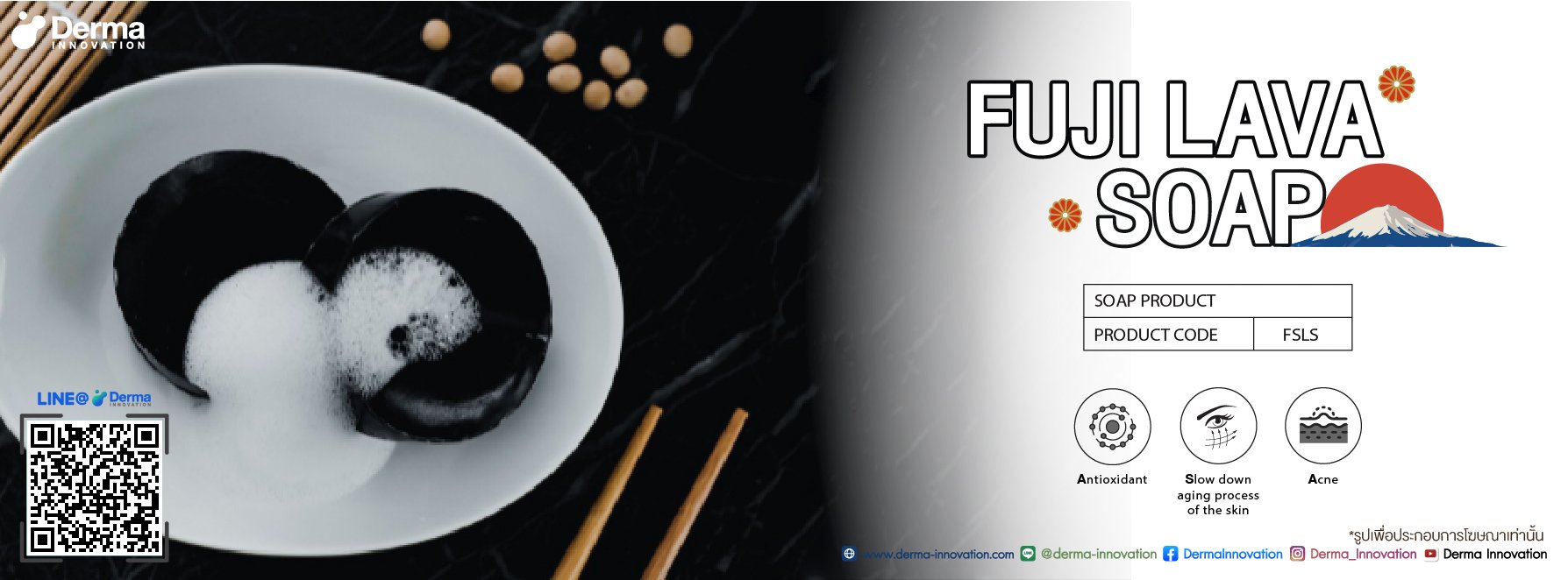 Fuji Lava Soap สบู่ทำความสะอาดผิวหน้า เพื่อผิวเนียนนุ่ม ชุ่มชื้น แลดูอ่อนเยาว์ด้วยสารสกัดแร่ธาตุต่าง ๆ จากภูเขาไฟฟูจิ น้ำมันรำข้าว โปรตีนถั่วเหลือง มะละกอ และชาโคลที่จะช่วยดูดซับสิ่งสกปรก และความมันของผิวหน้า ช่วยผลัดเซลล์ผิวเก่าเผยผิวใหม่ที่แลดูสุขภาพดี