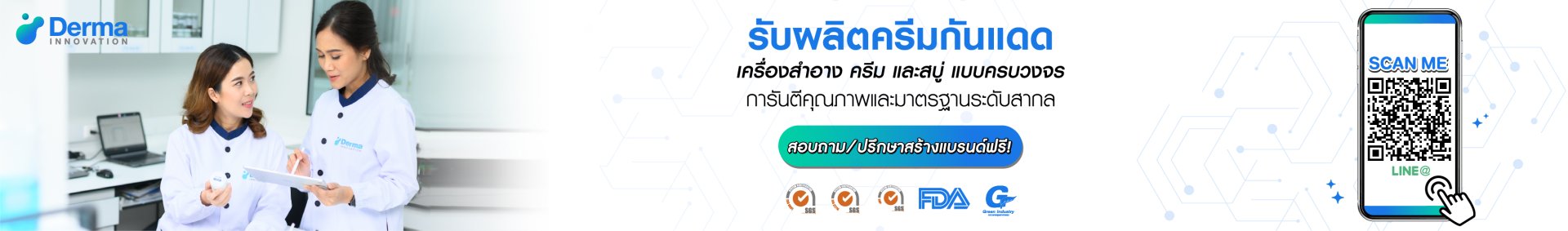 สั่งผลิตครีมกันแดดของคุณเองกับ โรงงานรับผลิตครีมกันแดด บริษัท เดอร์มา อินโนเวชั่น จำกัด รับสร้างแบรนด์ครีมกันแดด ทุกรูปแบบอย่างครบวงจร เน้นการคิดค้น วิจัย พัฒนาสูตร โดยทีมนักวิทยาศาสตร์ผู้เชี่ยวชาญเฉพาะทาง และกระบวนการผลิตที่ทันสมัย โรงงานผลิตสบู่รองรับความต้องการได้เป็นอย่างดี เรารับทําครีมกันแดดหลากหลายสูตร โรงงานผลิตสบู่มีบริการจดทะเบียน อย. สินค้าของคุณเพื่อให้สินค้าจัดจำหน่ายได้ทันที นอกจากนี้เรายังมี โรงงานผลิตเครื่องสำอาง และโรงงานผลิตครีมที่พร้อมให้บริการอย่างครบครัน