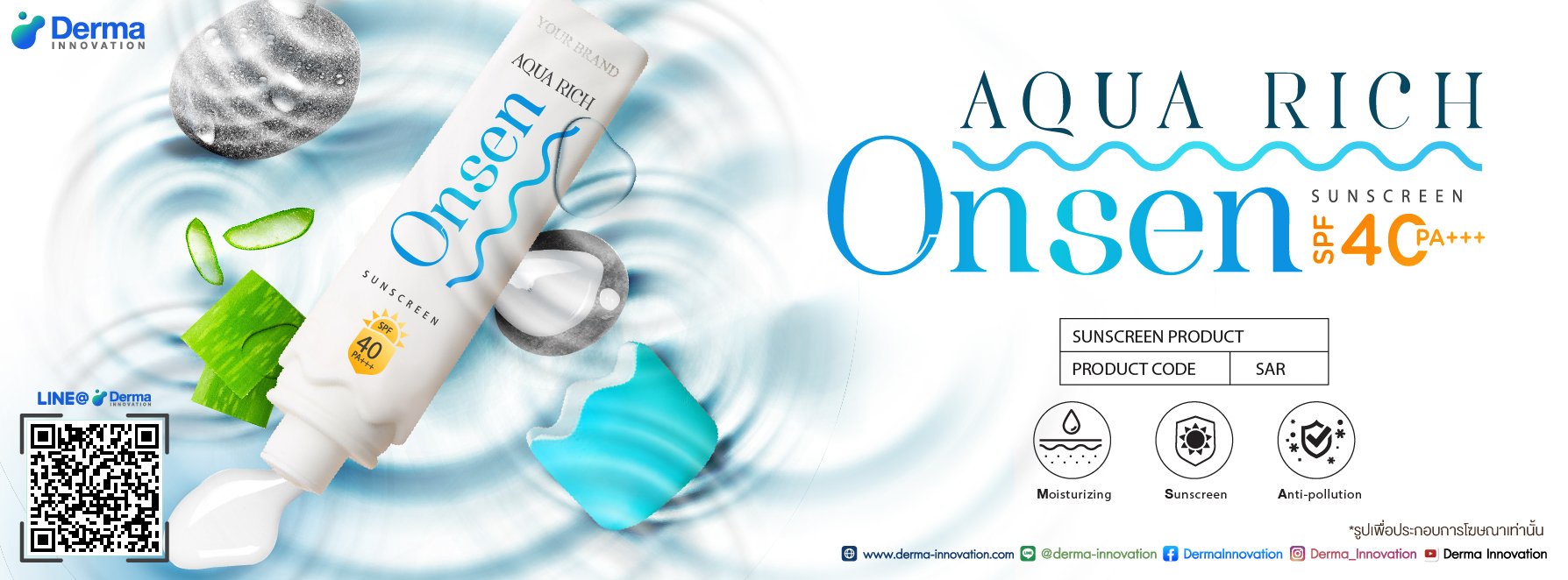 - Water resistance (40 minutes) หมายความว่า ครีมกันแดดสามารถกันน้ำได้นาน 40 นาที